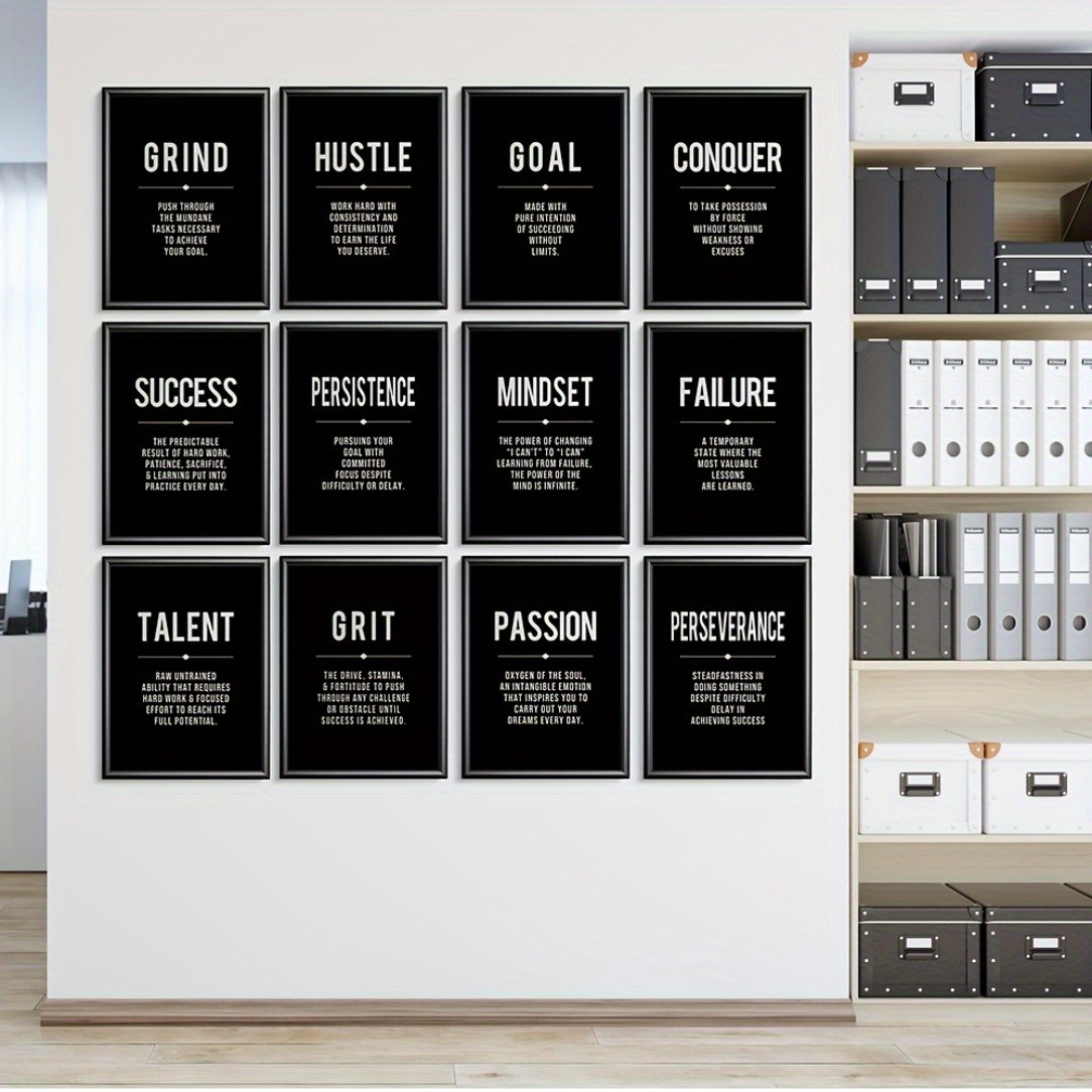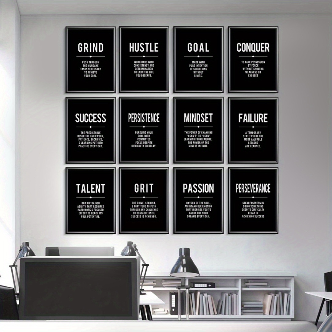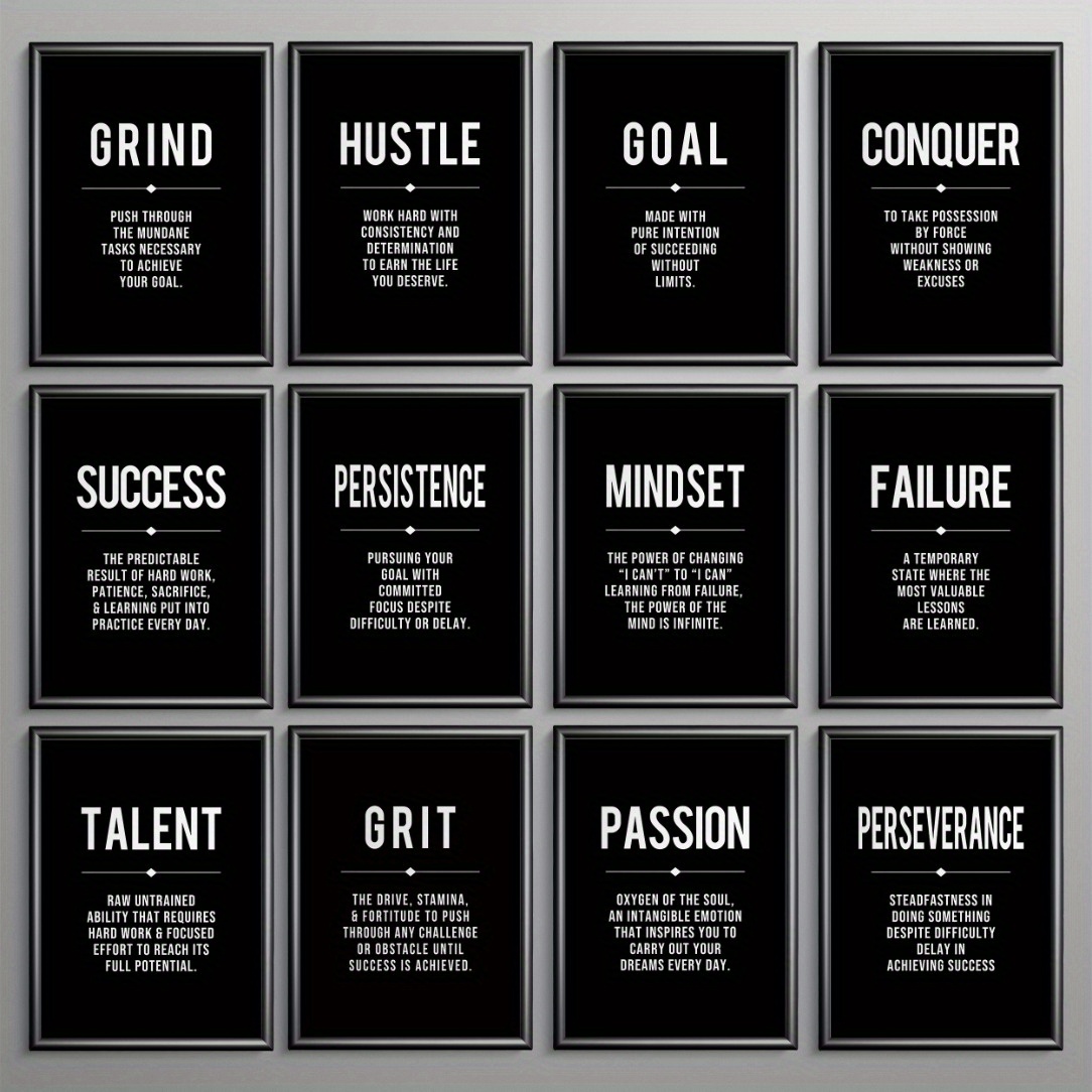 Ignite your ambition with The 12 Commandments Wall Art Set — twelve minimalist prints designed to keep your mindset razor-sharp and success-driven. Each poster embodies a core principle of achievement — from Grind and Hustle to Perseverance and Mindset — reminding you daily to stay focused, push harder, and never settle. Perfect for home offices, bedrooms, or creative workspaces.